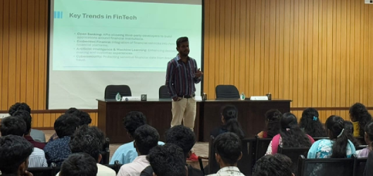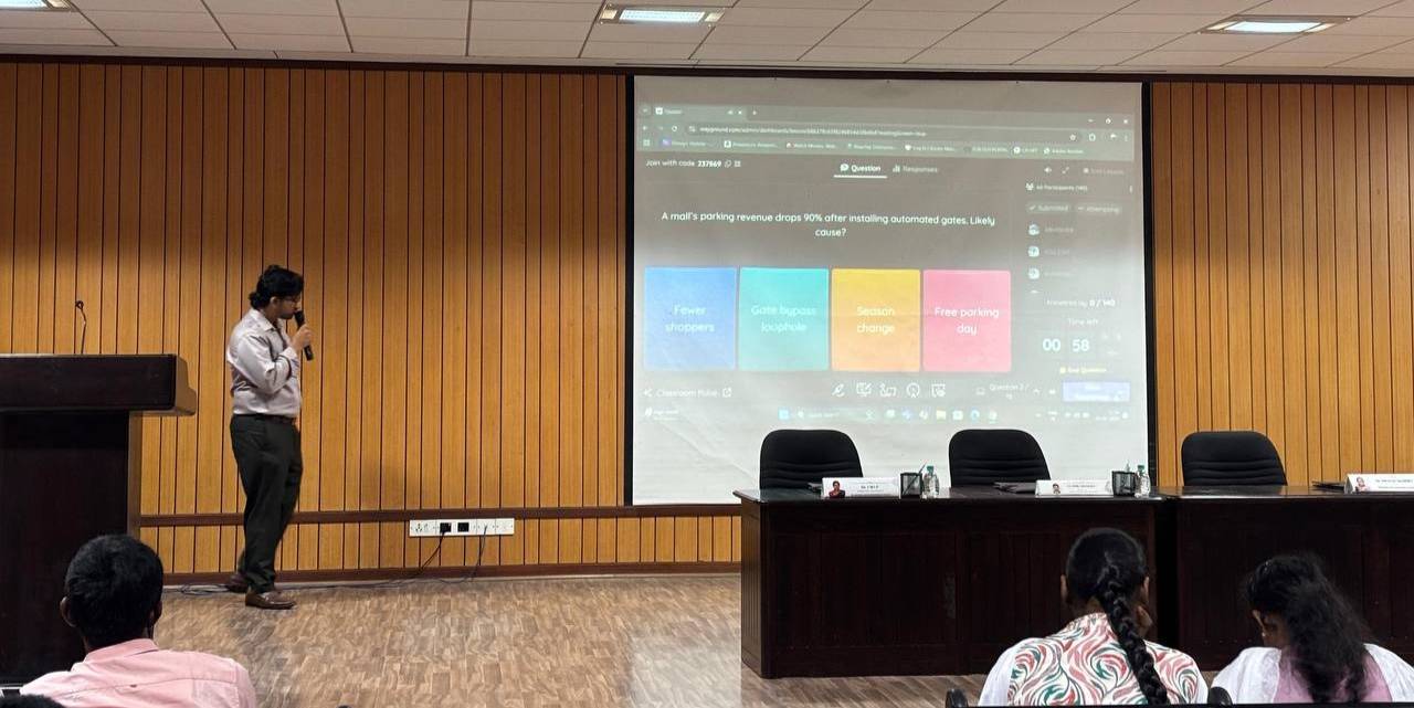 The event “AI and the Art of Market” is scheduled for July 31, 2024, at 10:00 AM, featuring Mr. S. Ashok Kumar, CEO of Maxzfinserv, as the guest speaker. The workshop commenced with an introduction to stock market fundamentals, covering basic concepts, trading, and market dynamics. This was followed by a presentation on AI-based prediction techniques, including machine learning algorithms, data analysis, and forecasting models commonly used in financial markets. Two guest speakers shared their expertise in AI and finance, demonstrating real-world applications and highlighting both potential and limitations. Interactive sessions encouraged student engagement, questions, and discussions, along with an introduction to AI and market prediction, an overview of AI techniques and models used in market forecasting, case studies and real-world examples, and a hands-on session with AI tools and platforms..