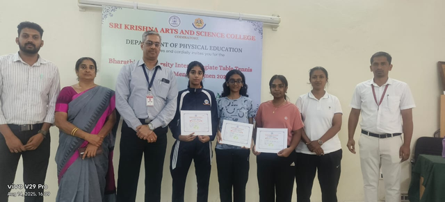 Department of Physical Education is one of the Pioneer Departments of Sri Krishna Arts and Science College with the Vision of high standards, structural training and active life, leading to motto of benches to podium is committed to provided equal and fair opportunity to all its wards. It’s diversified programme would allow it’s students to reap the benefits leading to physical fitness, personality development culminating in enjoyable experience in a long run of their life. We as a Department assure that the above standards are maintained to enrich the wards of Sri Krishna Arts and Science College.