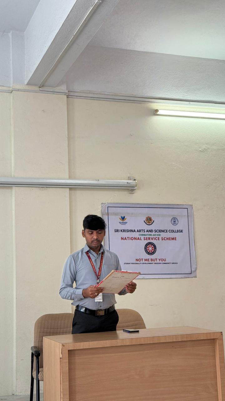 The National Service Scheme (NSS) is a Central Sector Scheme of the Government of India, Ministry of Youth Affairs & Sports. It provides opportunity to the students of India to take part in various government led community service activities & programmes. The National Service Scheme (NSS) at Sri Krishna Arts and Science College is a vibrant and integral part of the institution’s commitment to community service and social responsibility. Established with the aim of fostering a spirit of volunteerism, social awareness, and active participation in community development, the NSS program at the college has made a significant impact on both the campus and the surrounding communities. Under the guidance of experienced faculty advisors, NSS volunteers organize and participate in numerous events and projects throughout the year. These include blood donation camps, awareness campaigns on important social issues, tree planting drives, cleanliness and sanitation initiatives, and educational programs for underprivileged children. By actively engaging in such activities, the NSS unit at Sri Krishna Arts and Science College contributes to the overall well-being of society.